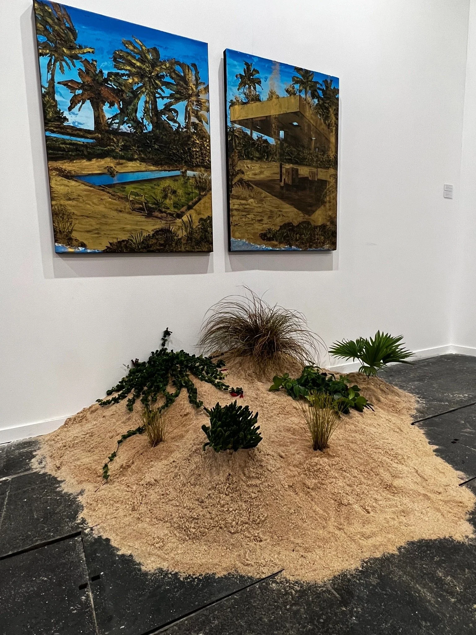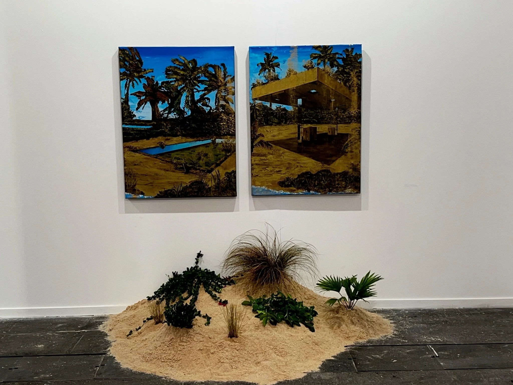 Investment Opportunity, Guánica, Puerto Rico, 2023, oil, beeswax, and gold powder pigment on canvas, 40″ x 30″, Chilo Andreu collection.